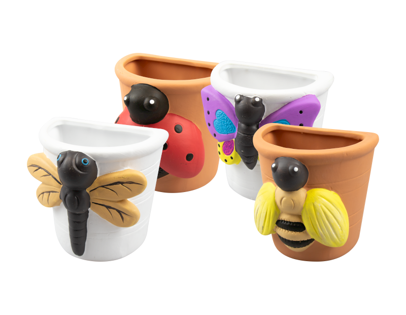 Each pot features a summer insect decoration on the front and is complete with a hanging hole on the back for attaching to a wall or fence.