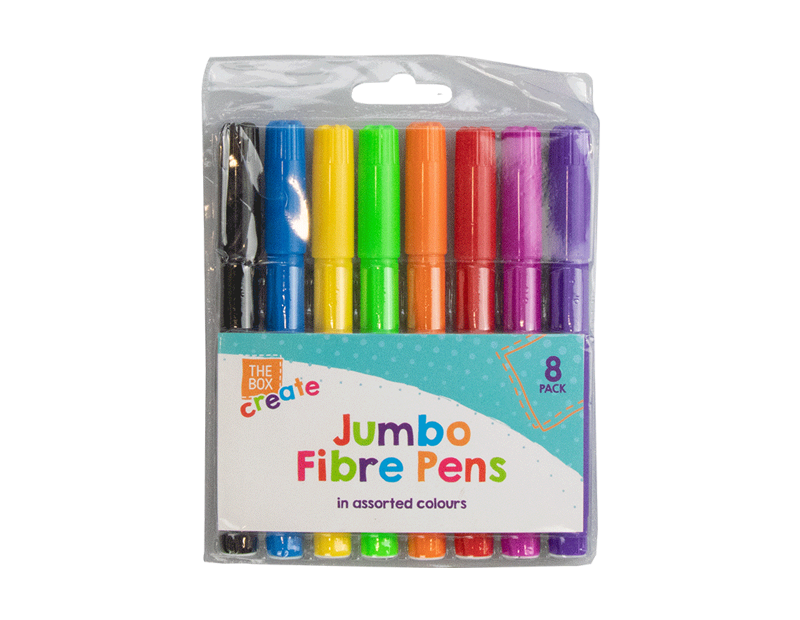 This pack of Jumbo Fibre Pens contains eight pens that measure a massive 14cm in length and feature assorted colours.