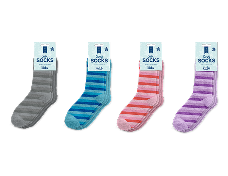 These kids cosy socks are great for keeping cold feet warm during the colder months. Each pack of socks comes with two pairs; one block colour and one striped.