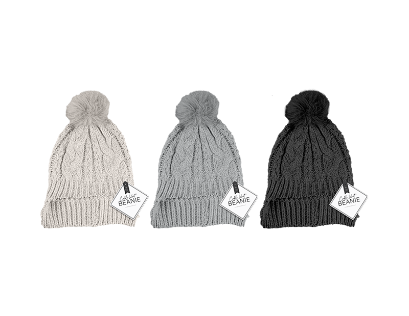 Ladies Cable Knit Hat with Pom Pom