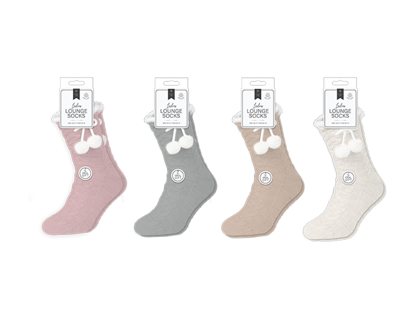 These ladies lounge socks are the perfect pair of socks to relax in after a long day. They will keep feet warm and toasty while being super soft and cozy. Each pair of socks has PVC gripper dots on the sole to prevent slipping.