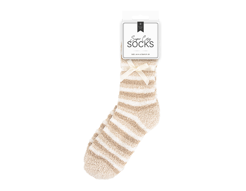 These Ladies Cozy Stripe Socks are ideal for winter and feature a polyester and elastane construction. A great gift or stocking filler at christmas time.