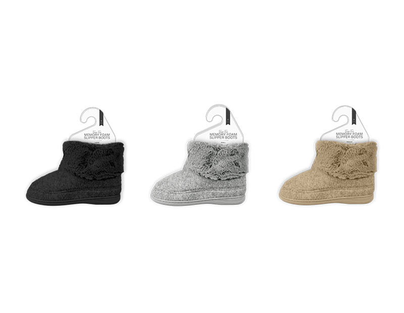 Ladies Faux Fur Lined Memory Foam Slipper Boots