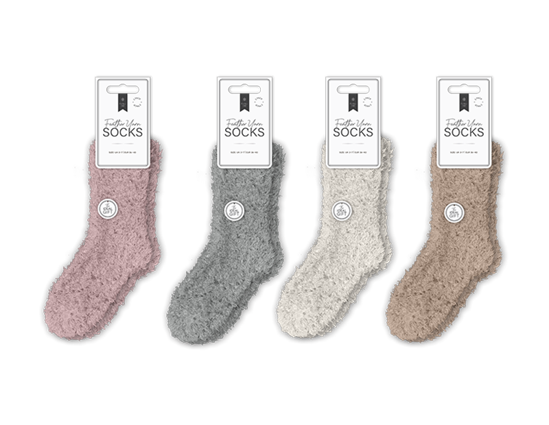 Fluffy feather yarn socks that are soft and warm. Perfect socks for casual wear at home or to wear to bed.