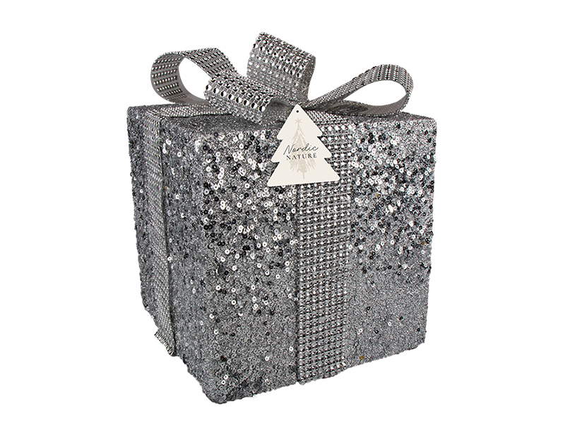 An easy and exciting way to add a Christmas feel to any surroundings with this Large glitter gift box decoration.