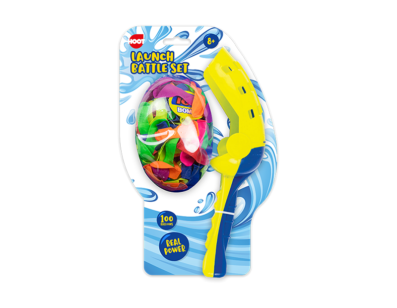 This launcher battle set comes with one hand held launcher and 100 water balloons. Simply fill up the balloons as normal, place in the launcher and send it flying.