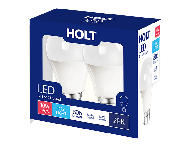 LED Classic Bulb 10W GLS A60 B22/BC Daylight 2pk