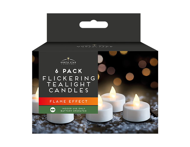 LED White Flickering Tea Lights 6pk