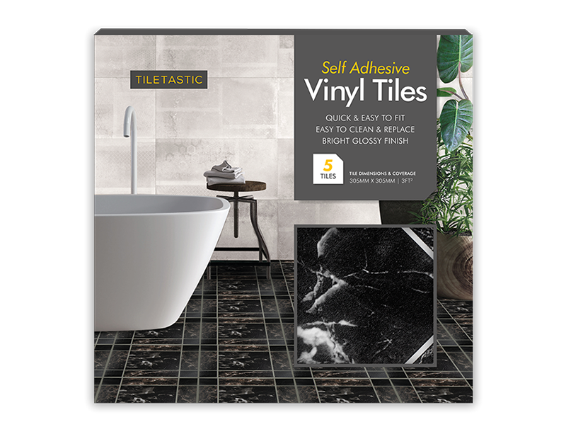 This pack of Self Adhesive Vinyl Floor Tiles contains five tiles that measure 30.5cm x 30.5cm with a 3 square foot total coverage.