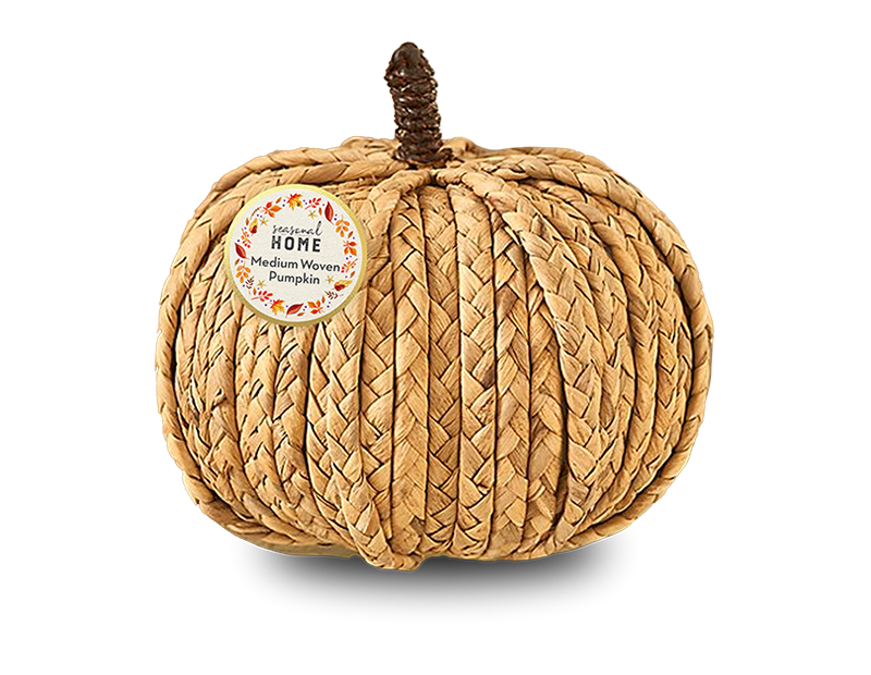 Each pumpkin measures H21cm x 22cm DIA, and features a rustic rafia cable construction with contrast colour stalk.