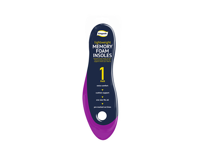Memory Foam Insoles that are lightweight and designed to mould to the shape of feet to provide extra comfort and cushion support.