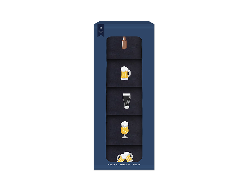 This pack of mens socks comes with five individual pairs of cotton rich socks, each with an embroidered design. Presentably stacked in a smart box with a cut out window, the socks would make a great gift for any occasion.