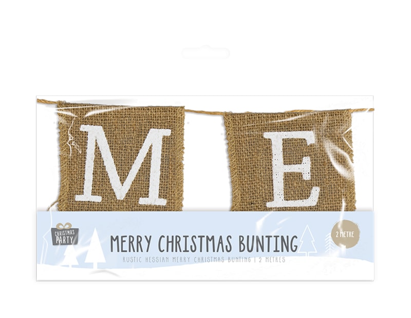 This "Merry Christmas" Hessian bunting is sure to set the scene for Christmas. Add a charming, rustic flourish to your Christmas decorations.