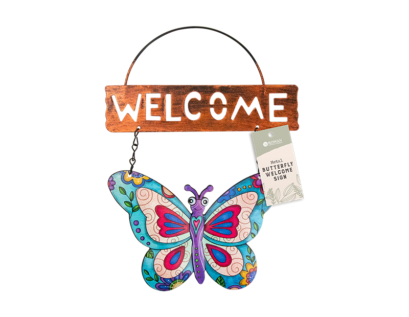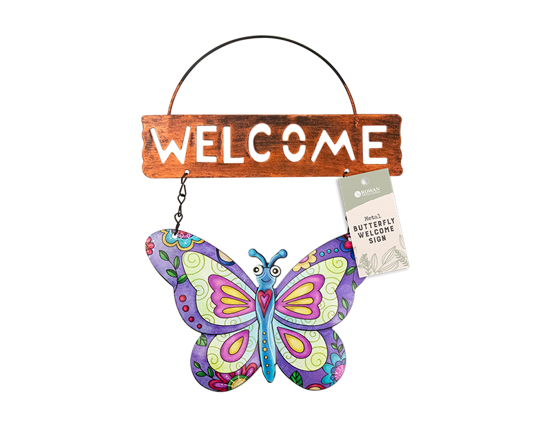 The Metal sign is made up of three components, The Copper metal sign with attached wire makes it easy to hang the sign whether this be in the house or in and around the garden, such as on the shed, garage or fence. The beautifully painted Metal butterfly is then attached by a black chain.