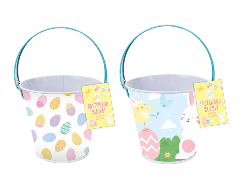 This Metal Easter Treat Bucket is constructed from tinplate and features a colourful Easter printed design.