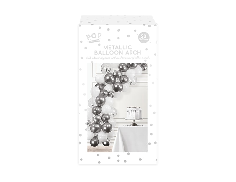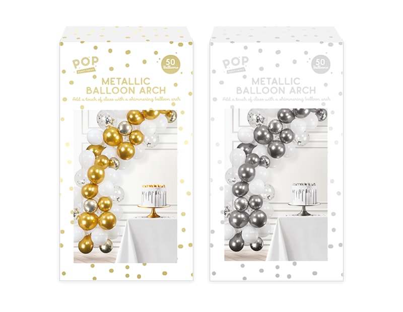 Transform any space into a celebration venue with our Metallic Balloon Arch. This 50-piece set includes a stunning assortment of metallic balloons designed to create a beautiful, customisable balloon arch for various events. Perfect for weddings and birthdays, or store displays, this kit provides everything needed for a striking and professional-looking decoration.