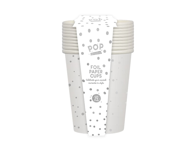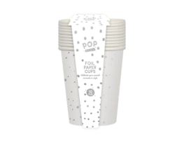 Each cup is made from food grade paper and has an approx max capacity of 500ml, measuring H13.5cm x 9cm diameter and features a metallic foil polka-dot design.