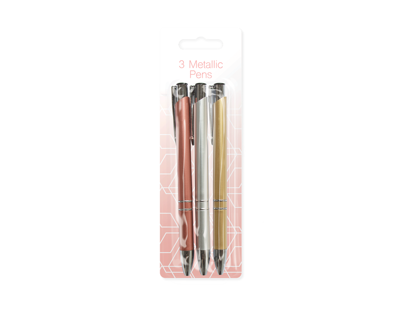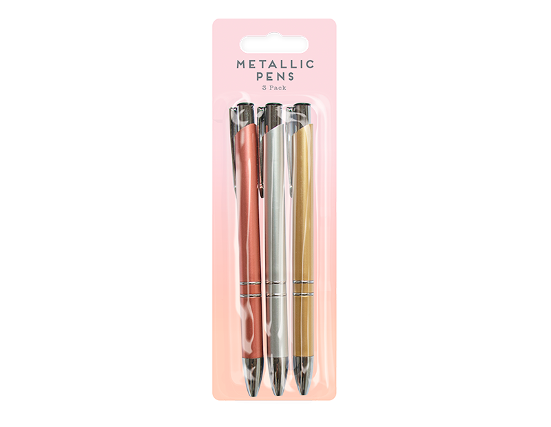 This pack of Metallic Pens contains three individual pens in silver, gold and rose gold.