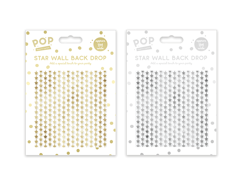 Enhance events or retail spaces with this Metallic Star Wall Back Drop, desgined to create a striking backdrop and add a special touch to any party or celebration.