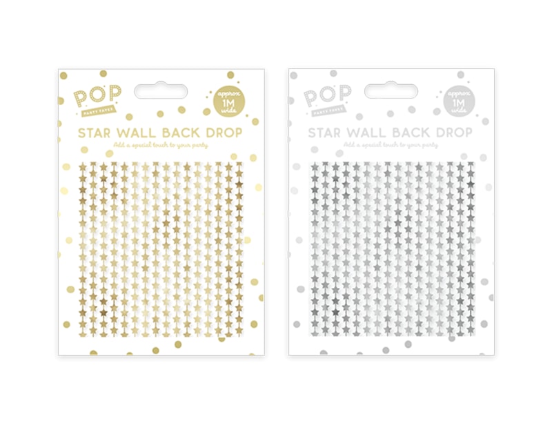Enhance events or retail spaces with this Metallic Star Wall Back Drop, desgined to create a striking backdrop and add a special touch to any party or celebration.