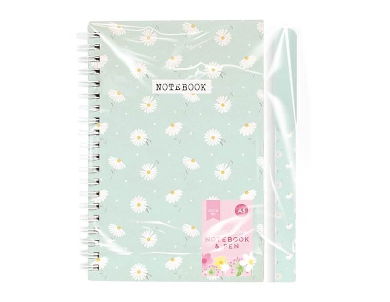 These handy A5 Wiro notebook & pen sets contain an A5 pad containing sixty sheets of 70gsm white lined paper and a plastic biro pen with blue ink.