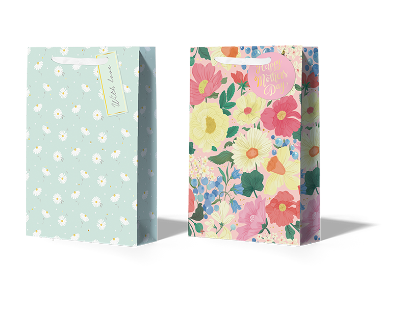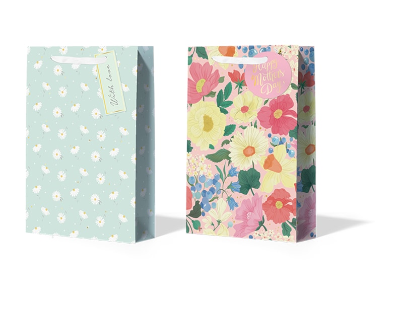 Large Mother's Day gift bag, with beautiful and elegant designs crafted from strong and sturdy paper, with a ribbon handle.