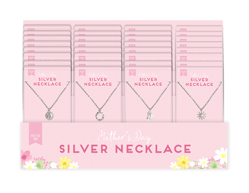 Each carton contains an assortment of four necklaces, each with a costume silver chain and an assortment of four charms.