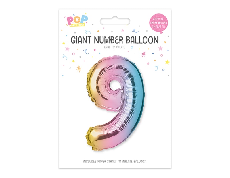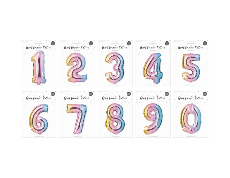Each number balloon is multicoloured and can be filled with air or helium.