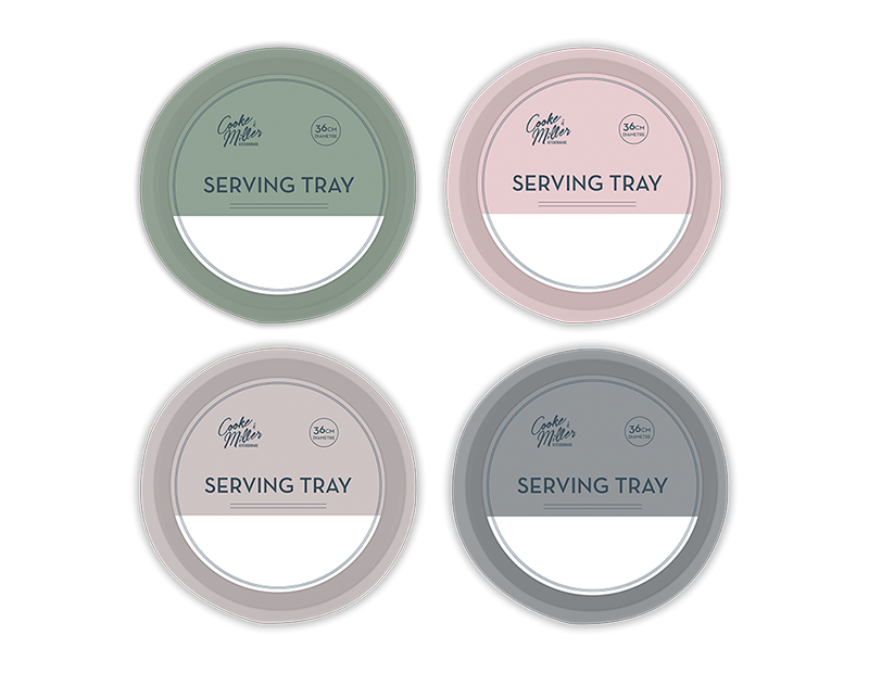 Tray diameter is approximately 36cm. Hash wash only. Each carton contains four assorted natural colours.