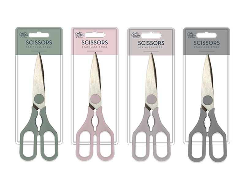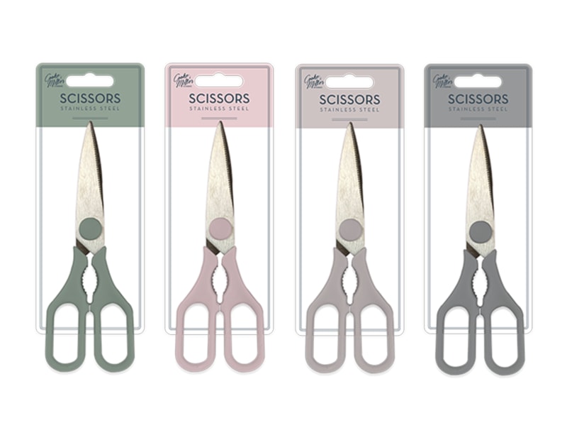 The scissors are complete with a coloured plastic handle that offers comfort and ease of use. Each carton comes with an assortment of four natural colours.