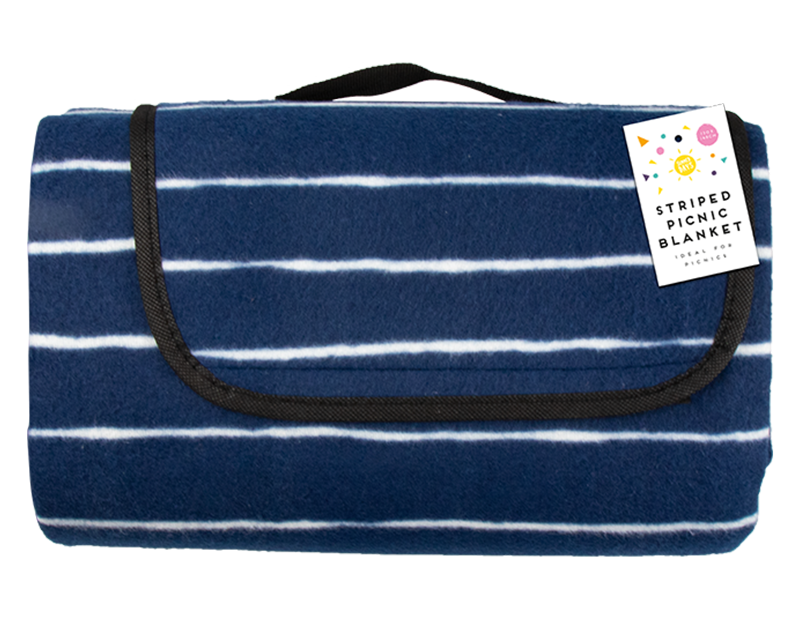 Navy Stripe Foldable Picnic Blanket 130cm x 148cm