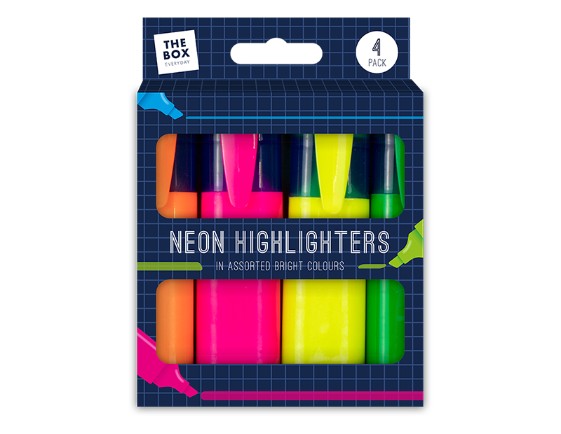 Neon Highlighter Pens - 4pk Boxed