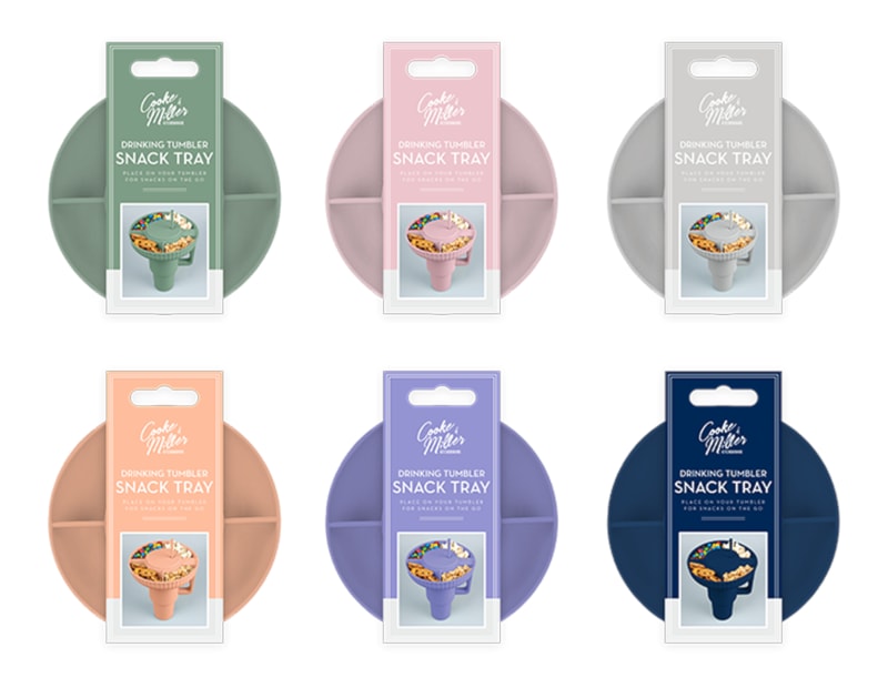 Designed to fit most 40oz tumblers, this snack tray securely attaches around the lid, providing a stable, spill-free surface for snacks. The snack tray measures 20cm in diameter and features four separate compartments to prevent snacks from mixing and enjoy a variety of different treats.