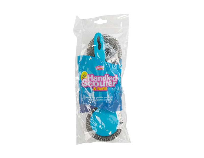 The scourer features an easy grip plastic handle and is complete with a non-scratch cleaning pad.