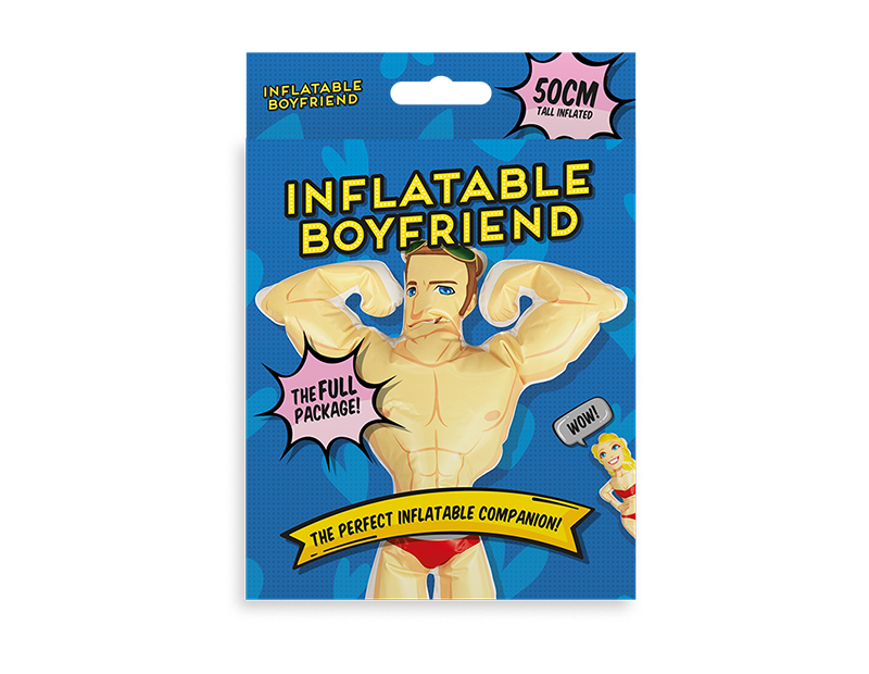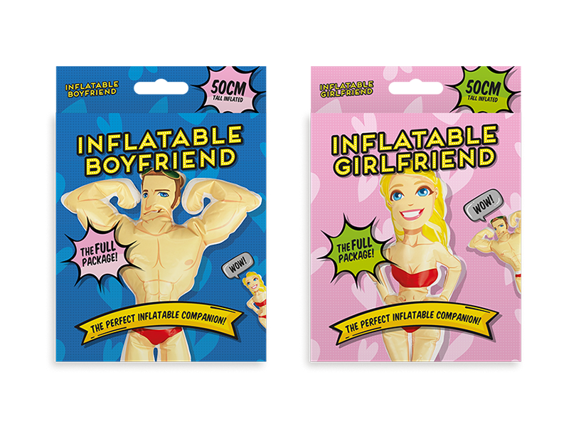 The inflatable partner is easily blown up via a valve and measures approximately 50cm tall when fully inflated. Each carton comes with an assortment of inflatable boyfriends and girlfriends.