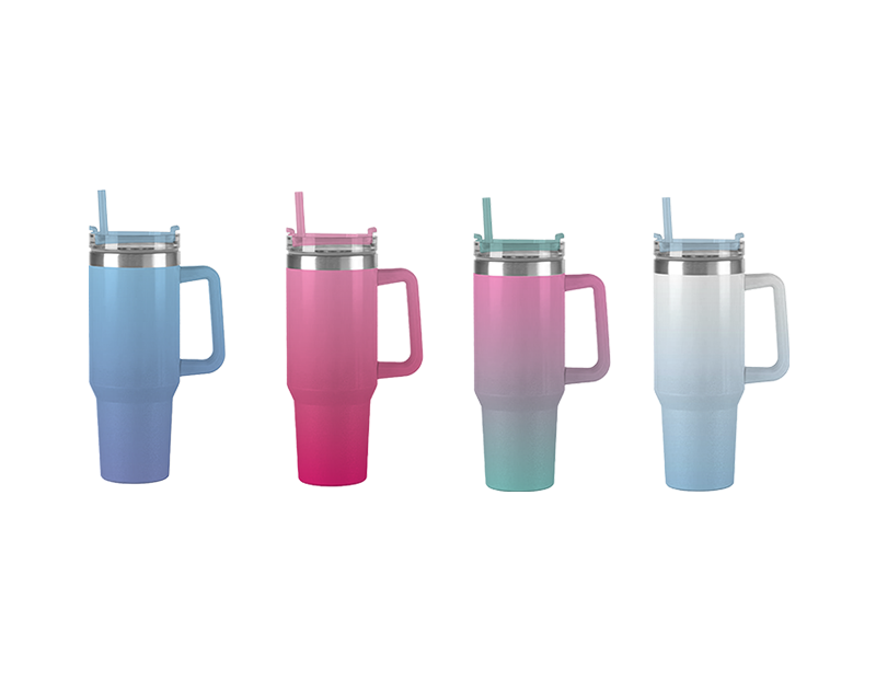 A new take on the classic popular tumbler. These beautiful ombre 40oz tumblers shimmer and sparkle, making them the perfect practical accessory for busy days and on the go.
