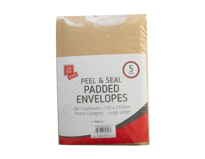 This pack of Padded Envelopes contains five individual envelopes that measure 15cm x 21.5cm and feature an internal air cushioning to protect fragile items.