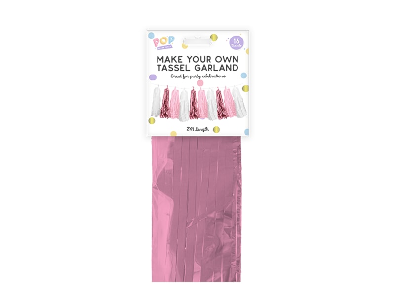 Each garland comes with 16 pre-cut tissue paper tassels that are easy to assemble. Simply follow the instructions on the back of the packaging how to construct the tassels. Pack also comes with 2m of ribbon and 18x silver wire ties.
