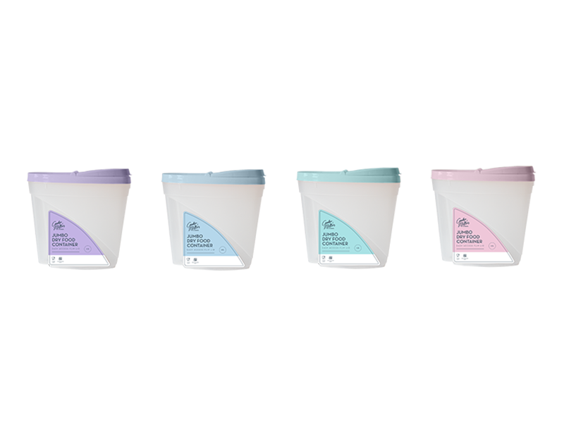These jumbo dry food containers are a must-have for any kitchen. Each container holds up to 3.5 litres of dry food, perfect for cereals, pasta, rice or baking supplies such as oats and flour. The containers feature an easy access flip top lid and a handle grip for easy pouring.