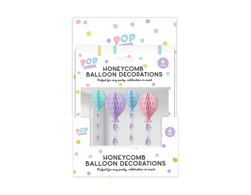 Pastel Multicolour Honeycomb Hanging Balloon Decoration Pack 4pk CDU