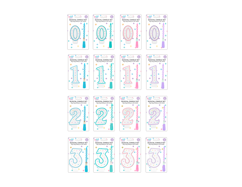 Each set comes with one musical candle, and one number candle in a pastel colour.