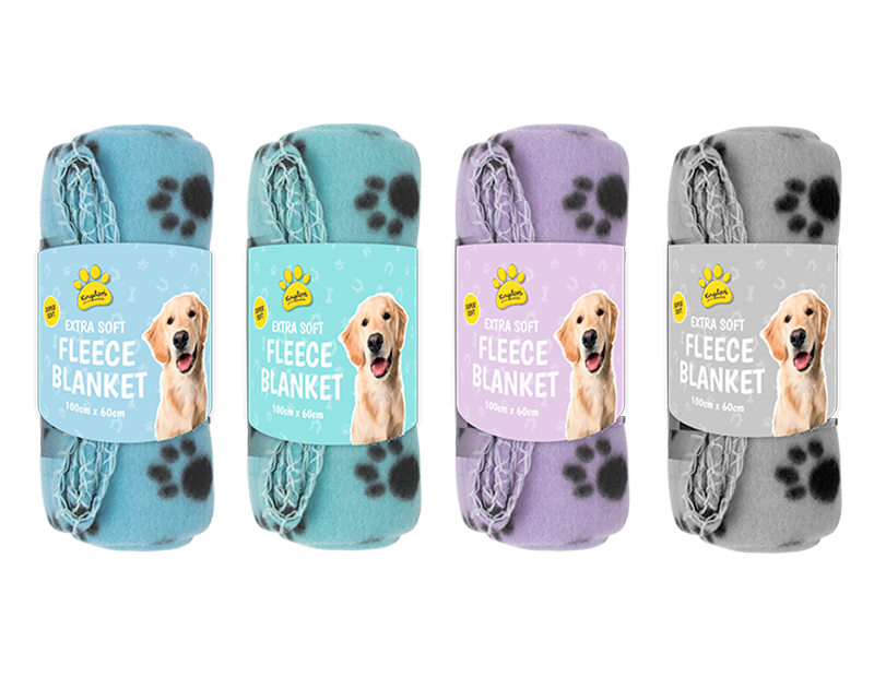 The pet blanket measures 100cm x 60cm and is complete with a paw print design pattern, ideal for use in pet beds or crates, as seat protection in the car or to reserve a pets favourite spot on the sofa.
