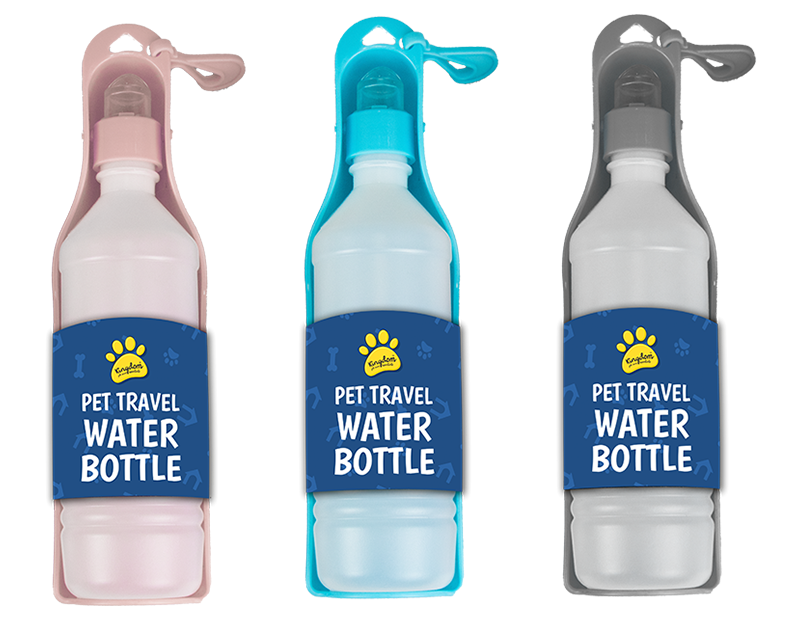 These Pet Travel Bottles are constructed from plastic and contain a 23cm water bottle, complete with a drinking / pouring nozzle and integrated bowl.