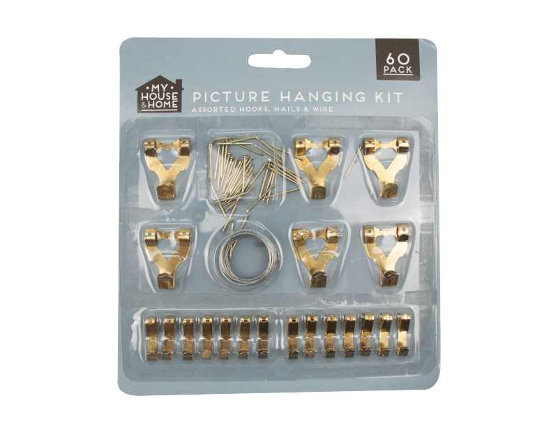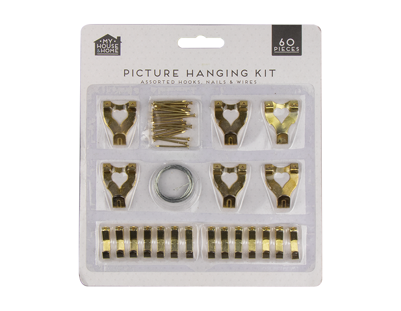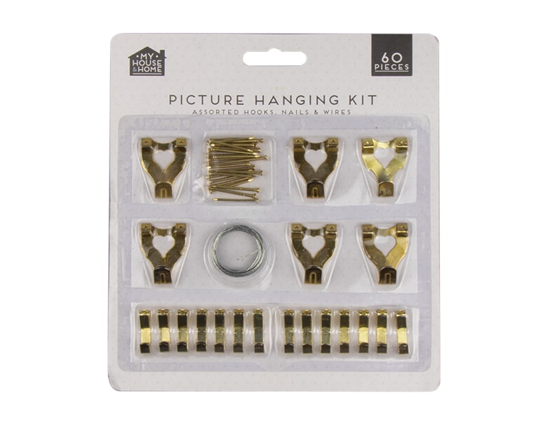 This Picture Hanging Kit contains sixty pieces that provide the essentials needed for hanging artwork, pictures and frames around the home.