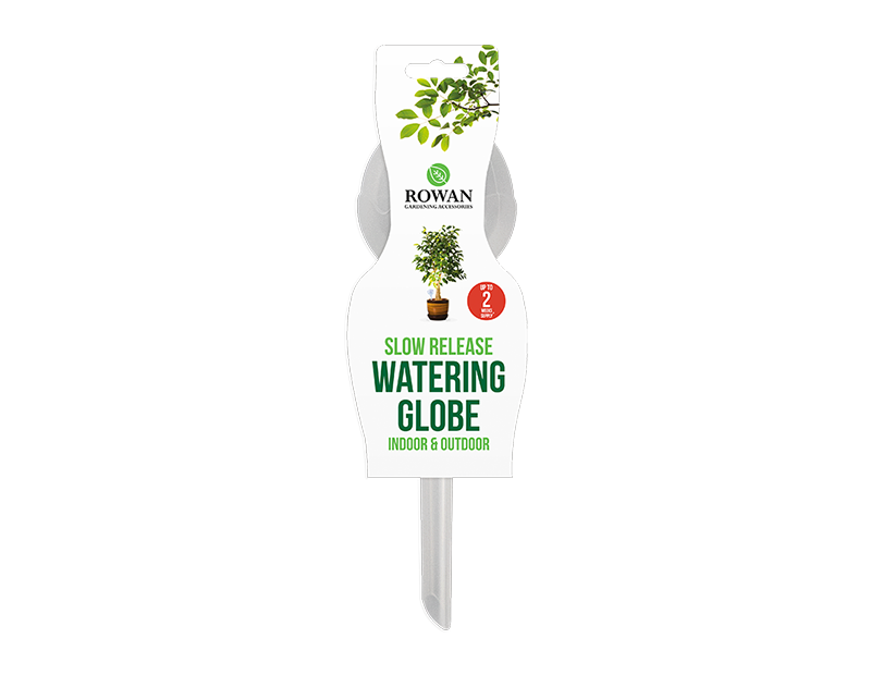 A slow-release watering globe provides an easy solution to watering plants. Great for indoor or outdoor use, the globe can automatically provide the water to a plant with a two-week supply of water.