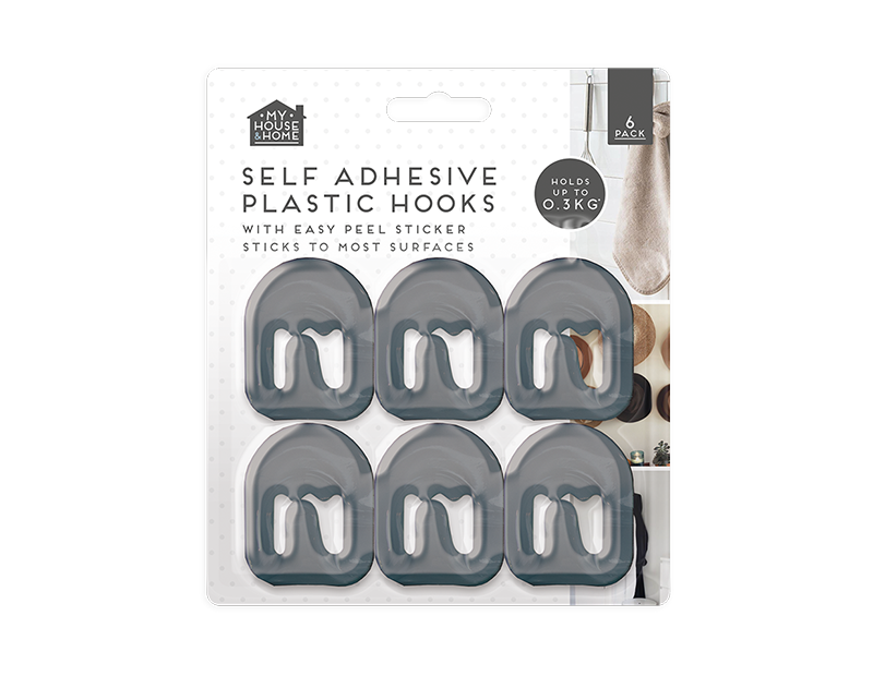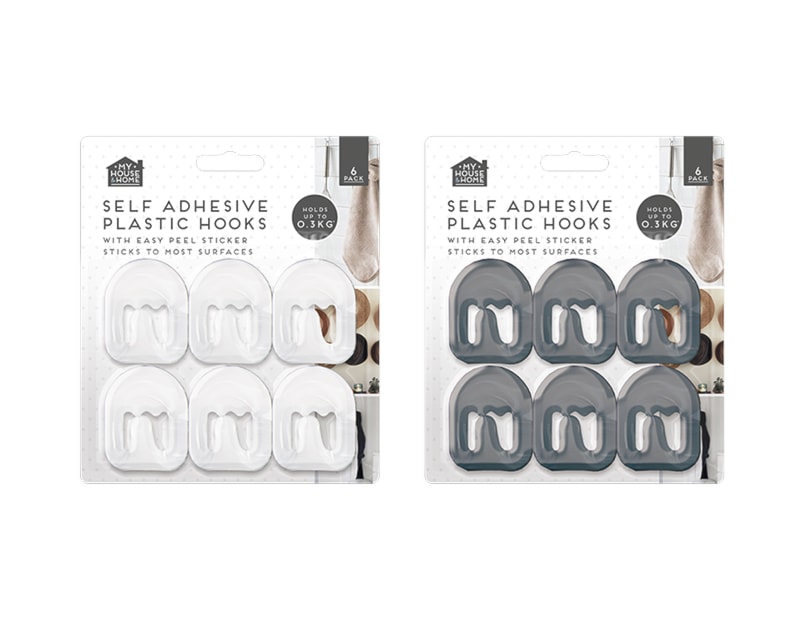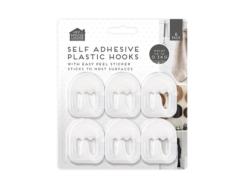 This pack of six individual self-adhesive hooks are ideal for in and around the home.