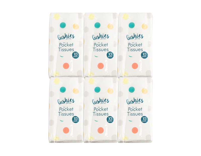 This multi-pack of Pocket Tissues contains six individual packs, each with ten tissues.