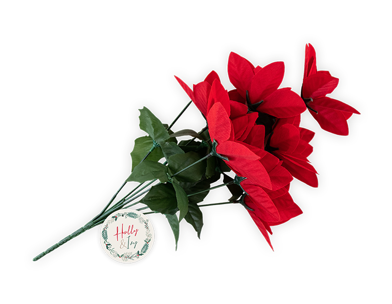 This Poinsettia Flower Christmas Spray is constructed from a polyester pongee fabric and features eight velvet flower heads. Each stem can be repositioned as required.