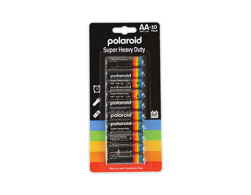 This pack of Polaroid Batteries contains 10 individual super heavy duty AA batteries that are great for all electrical devices including remote controls, gaming consoles, torches, satnavs and much more.