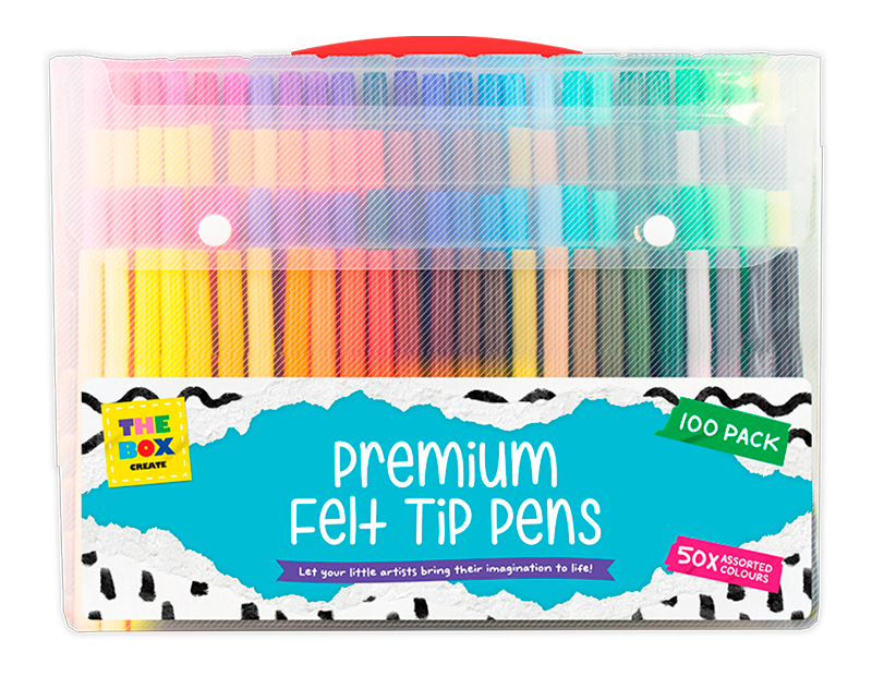 Each pack comes with 100 felt tip pens in fifty assorted colours, and comes in a popper closure carry case, perfect for keeping them organised.